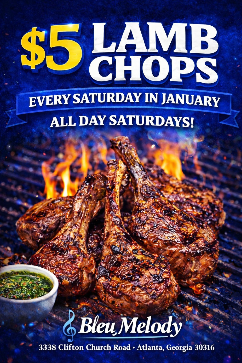 $5 Lucious Lamb Chops all day long!